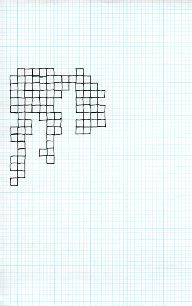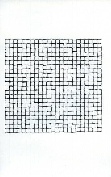 Drawn Boxes is a collection of 37 5" x 8" drawings. Each drawing contains an arrangement of small drawn squares on either graph paper or on a photocopy of a previous drawing on graph paper. The title of each drawing corresponds to the number of boxes drawn on that sheet of paper, and prompts questions about what is drawn and what is copied, what is original and what has changed, what does it mean if you can't tell the difference? Click on the image below to view all of the Drawn Boxes.